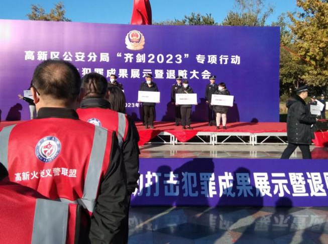 近日,高新區(qū)公安分局在火炬公園隆重舉行“齊劍2023”專項(xiàng)行動(dòng)打擊犯罪成果展示暨退贓大會(huì),金盾公司派出12名員工作為高新火炬義警參與此次執(zhí)勤。