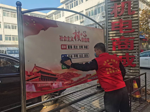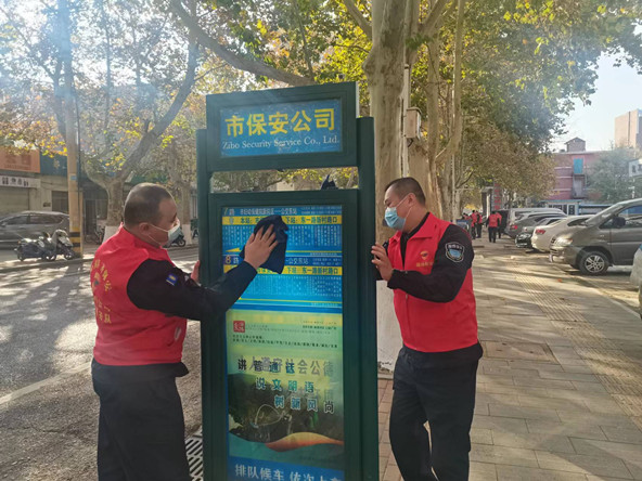 隨后,志愿者們又來(lái)到駐地附近的公共道路開(kāi)展公交站牌和公益廣告牌衛(wèi)生清理工作,通過(guò)開(kāi)展系列志愿服務(wù)活動(dòng),改善城市環(huán)境的同時(shí),引導(dǎo)廣大市民提高環(huán)衛(wèi)意識(shí),為營(yíng)造整潔有序、環(huán)境優(yōu)美的城市環(huán)境貢獻(xiàn)了淄保力量。